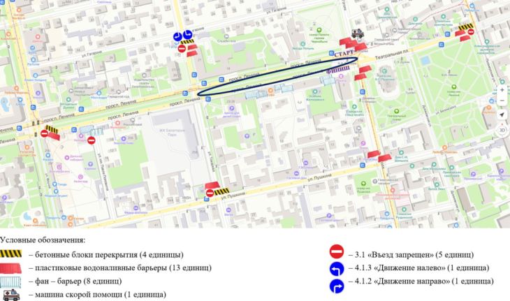 На период проведения мероприятия с 11:30 до 17:00 движение от Театральной площади до улицы Фрунзе будет перекрыто, в связи с чем, движение маршрутных транспортных средств № 2, № 4, № 9 будет изменено.
