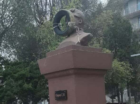 Неизвестные надругались над памятником С.М. Кирову, который расположен в одноимённом сквере в Евпатории. К бюсту прикрепили автомобильную шину. Также на фотографии, которую очевидцы разместили в соцсетях, видны повреждения постамента.