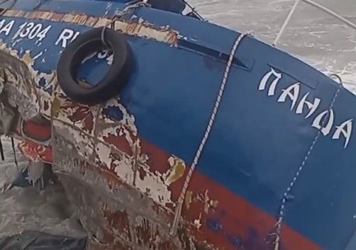Так волны выбросили на камень лодку под названием «Панда»,. Судя по кадрам, у судна серьезные повреждения.