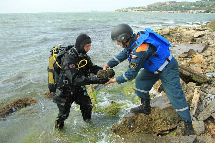 Первая операция по разминированию началась рано утром в акватории п. Опасный городского округа Керчь. Боеприпасы залегали в 70 метрах от берега на глубине 2,5 метрах. Сообщение о находках ранее поступило от местного рыбака, который проплывая на лодке, заметил их на дне. После детального обследования в указанном месте сотрудниками чрезвычайного ведомства было найдено и идентифицировано 6 единиц осколочных авиабомб весом 10 кг каждая.