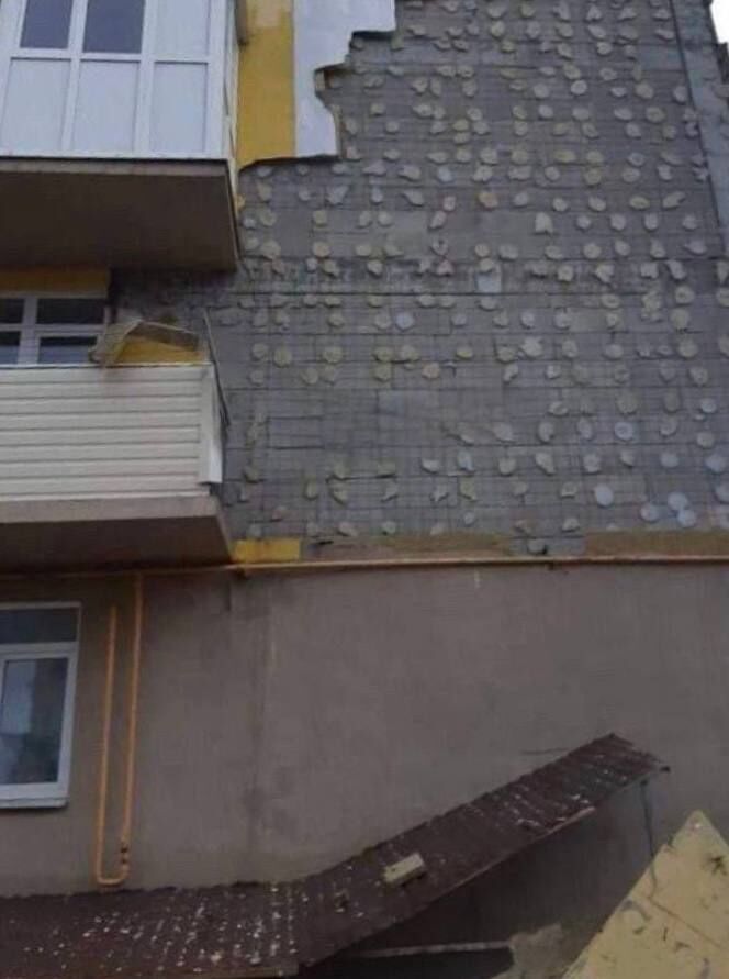В Керчи из-за непогоды обрушилась часть фасада многоэтажки