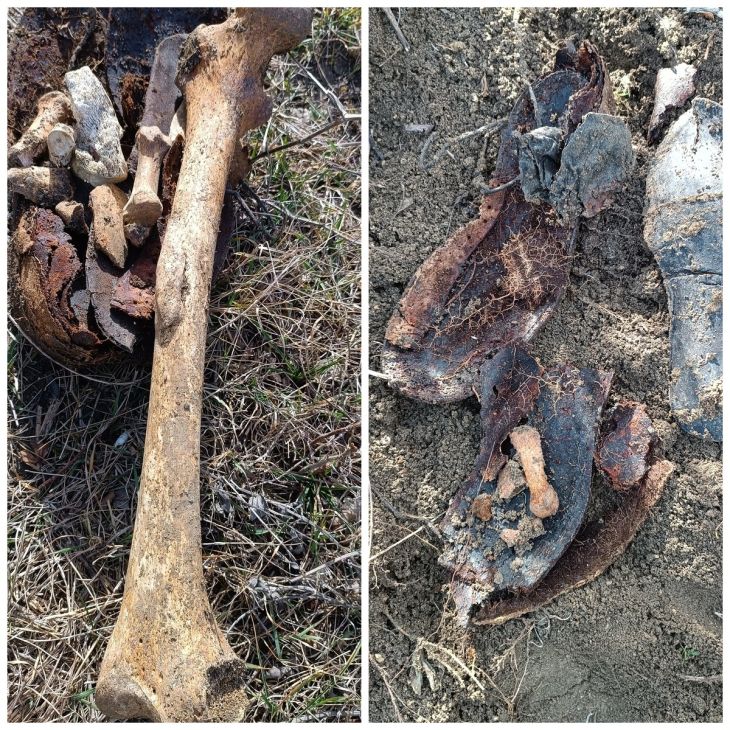 Под вечер поисковикам удалось обнаружить останки двух советских воинов. Первый боец, предположительно, был верховым. При нём обнаружены рубашка от ручной гранаты РГД-33, остатки патронов от винтовки Мосина и фрагменты кожаного ботинка.