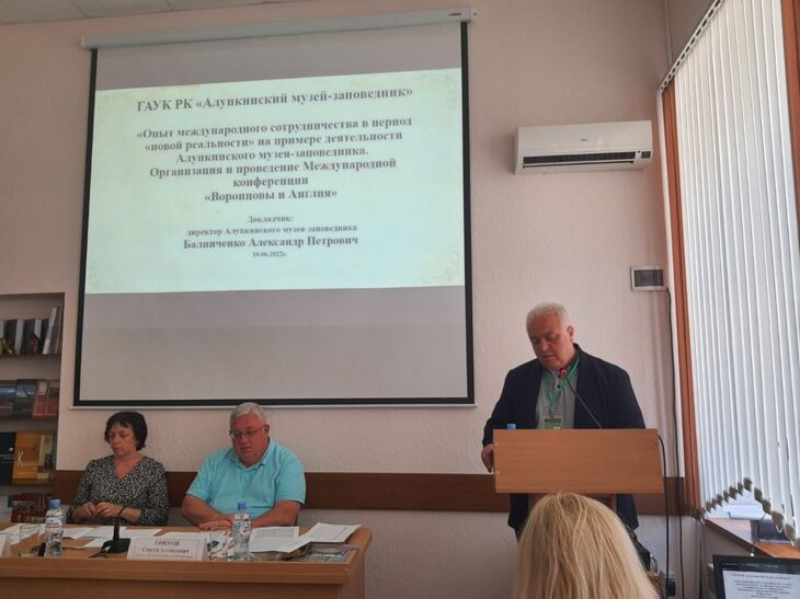 Директор Алупкинского музея-заповедника Александр Петрович Балинченко в своём докладе «Опыт международного сотрудничества в период «новой реальности» на примере деятельности Алупкинского музея-заповедника» поделился опытом привлечения иностранных исследователей и деятелей культуры.