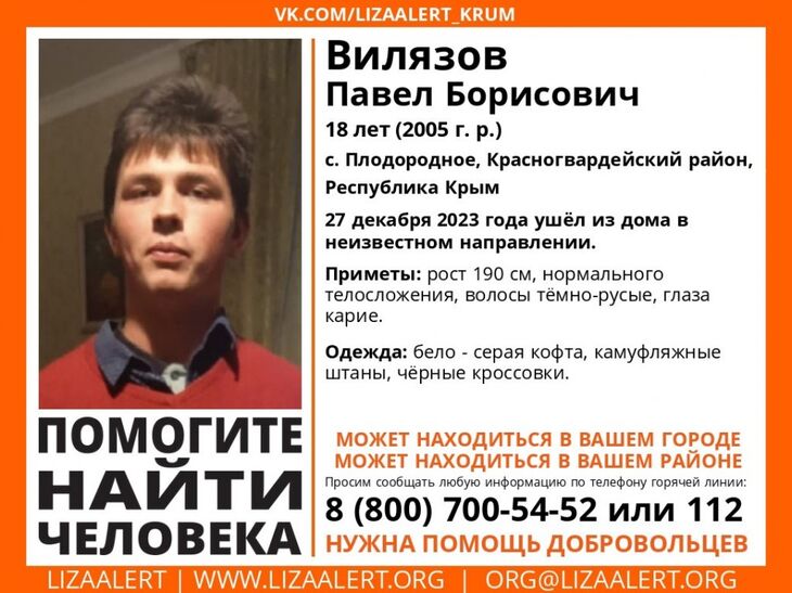 Если вы видели этого парня, сообщите по номеру +7 978 808 14 98 – Зейнеп или по телефону горячей линии поискового отряда +7 800 700 54 52