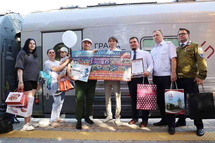«Для нас сегодня очень важный день и мы встретили 15 миллионного пассажира. Начали мы свое курсирование с 23 декабря 2019 года. Сегодня «Гранд Сервис Экспресс» — это 20 поездов дальнего следования, 3 прицепные группы и кратно увеличившийся персонал. Ежегодно мы увеличиваем количество наших пассажиров. Нашему юбилейному пассажиру мы подарили сертификат, который позволяет осуществить проезд по любому из наших маршрутов в две стороны со скидкой 99%. Так же наши фирменные товары с брендом Таврия», — отметил начальник управления обособленного подразделения «Крым» компании «Гранд Сервис Экспресс» Альберт Садретдинов.