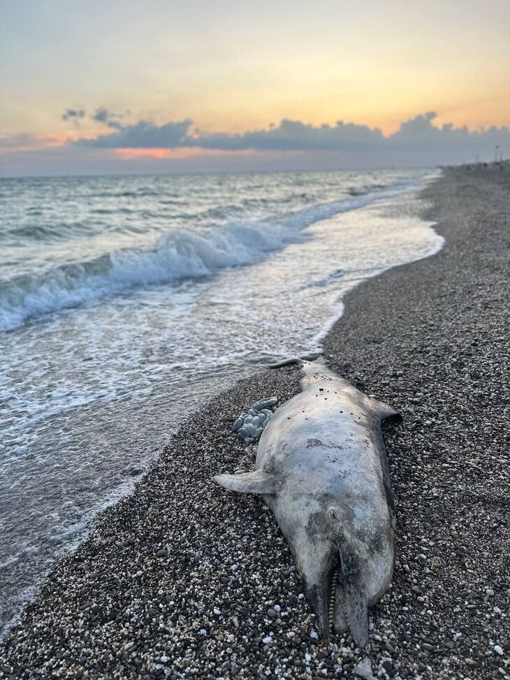 «Улица Каламитская, выбросило мёртвого дельфина с распоротым брюхом на берег. Вокруг дети и отдыхающие. Необходимо соответствующим службам его убрать», — написал автор публикации в соцсети.