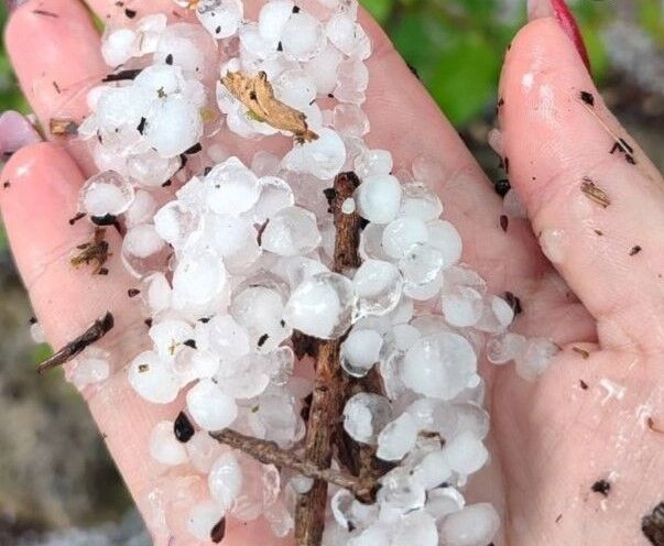Жители Симферополя в соцсетях поделились фотографиями, на которых виден град, который прошел в городе вместе с ливнем.