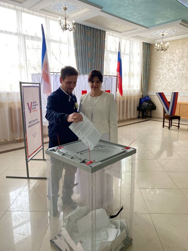 В селе Лозовое Симферопольского района молодая пара в свадебных нарядах пришла, чтобы принять участие в выборах.