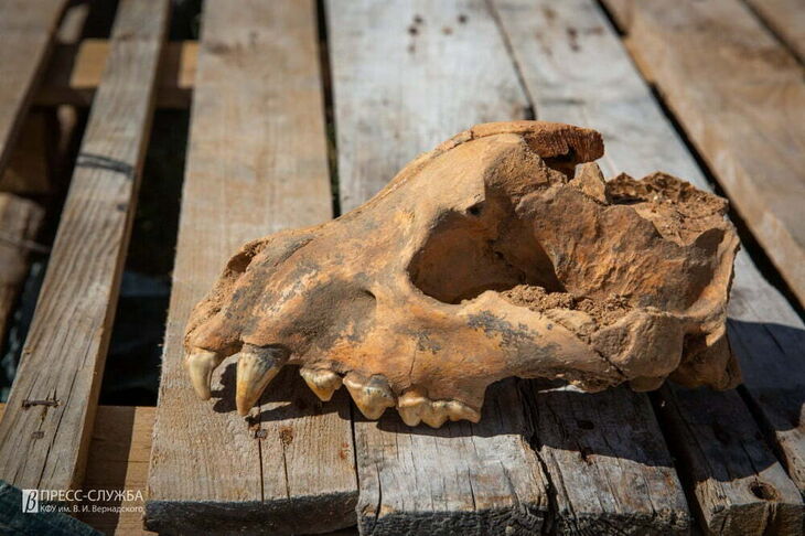 Учёные Крымского федерального университета и Российской академии наук впервые на территории Европы нашли почти полный череп ископаемой гигантской гиены пахикрокуты.
