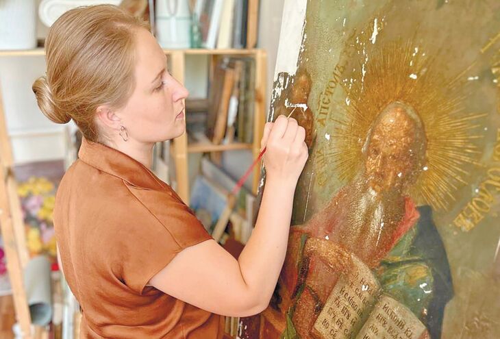 «Сейчас у меня на реставрации икона Свято-Троицкого собора. По характерному кракелюру могу сказать, что она не старше XVIII века», — отметила Алина Агафонова.