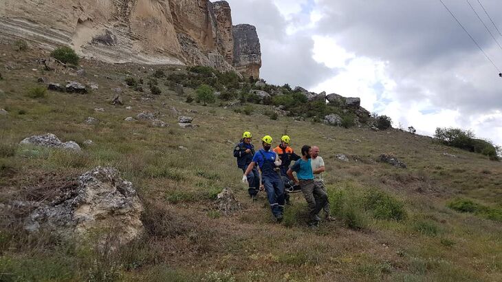 По прибытии стало известно, что в районе пещерного города Качи-Кальон, где в это время осуществлялись прыжки с парашютом, житель г. Москва сорвался со скалы высотой 5-7 метров.