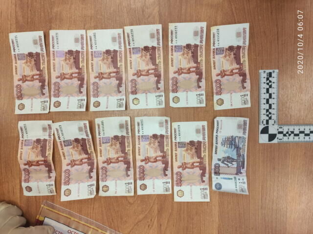 В ходе проведенных следственных мероприятий изъято 13 поддельных купюр номиналом 5000 рублей.
