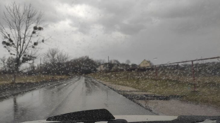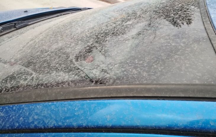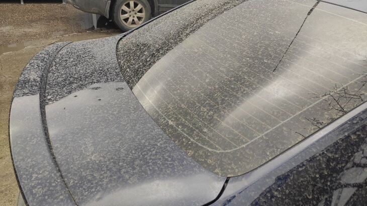В Симферопольском районе во время дождя один из участников дорожного движения на лобовом стекле автомобиля обнаружил мутные пятна. Фото очевидец опубликовал в соцсетях.