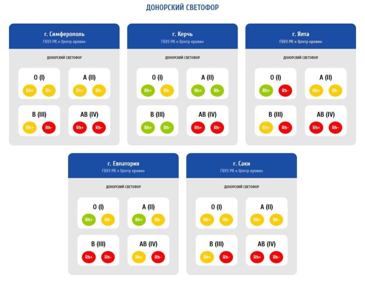 «Очень ждем доноров с группой крови и резус-фактором, которые отмечены в светофоре красным и желтым! Обязательно возьмите с собой паспорт и СНИЛС. Надеемся на вашу помощь в пополнении запасов», – рассказали корреспонденту Крымского информационного агентства в «Центре крови».