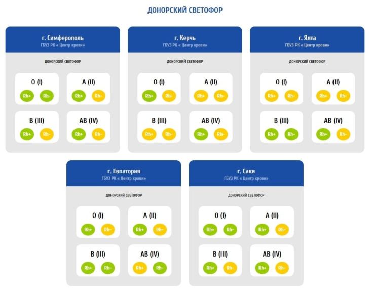«Очень ждем доноров с группой крови и резус-фактором, которые отмечены в светофоре красным и желтым! Обязательно возьмите с собой паспорт и СНИЛС. Надеемся на вашу помощь в пополнении запасов», – рассказали корреспонденту Крымского информационного агентства в «Центре крови».