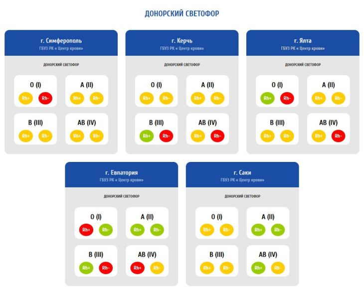 «Очень ждем доноров с группой крови и резус-фактором, которые отмечены в светофоре красным и желтым! Обязательно возьмите с собой паспорт и СНИЛС. Надеемся на вашу помощь в пополнении запасов», – рассказали корреспонденту Крымского информационного агентства в «Центре крови».