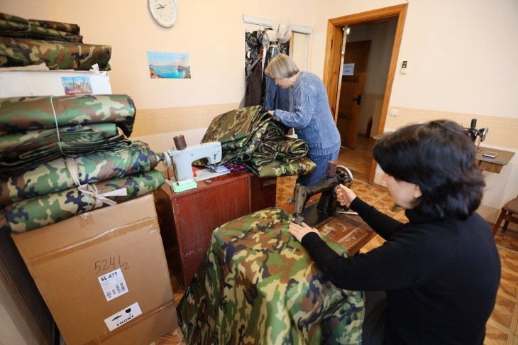 «Мы шьём антидроновые маскировочные одеяла, которые помогают скрыть бойцов и технику от вражеских дронов. Для этого используем специальную подкладку, вплетаем стропы, чтобы можно было закрепить ветки и замаскироваться в полевых условиях», - объясняет одна из мастериц.