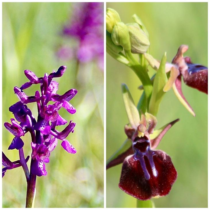 На опушках соснового леса цветут орхидейные: Анакамптис кавказский и Офрис сосочковая. Оба вида являются краснокнижными и нуждаются в охране.