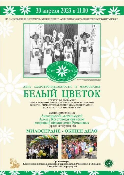 В воскресенье, 30 апреля, в Ливадийском дворце пройдет День благотворительности и милосердия «Белый цветок»
