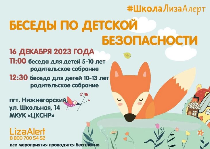 Также поисковый отряд приглашает родителей на собрание «настало время поговорить с детьми о безопасности».