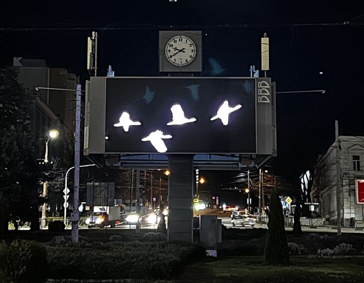 В память о жертвах теракта в «Крокус Сити Холле» на экранах в Симферополе появились журавли