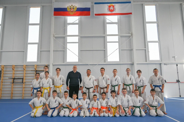 Сергей Аксёнов осмотрел помещения ФОКа и прилегающую территорию, пообщался с руководством, тренерами и спортсменами спортивной школы, которые провели показательные выступления по киокушин карате.