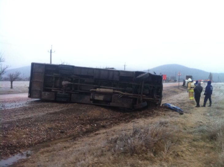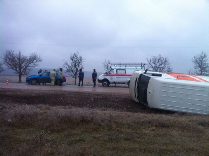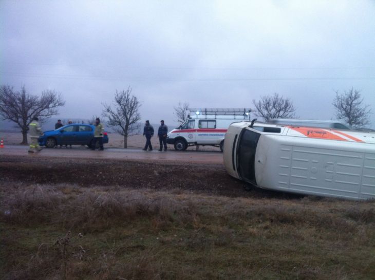 В результате ДТП на 76 км Феодосийской трассы перевернулись автобус и автомобиль (ФОТО)