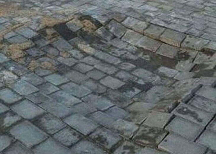 Пользователи социальной сети ВКонтакте выложили фото недавно уложенной плитки на строящейся набережной вокруг Солёного озера, которая «поплыла» после дождя.