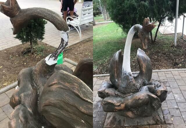 Напомним, в августе вандалы повредили скульптуру лебедя в сквере имени Пушкина в Саках.