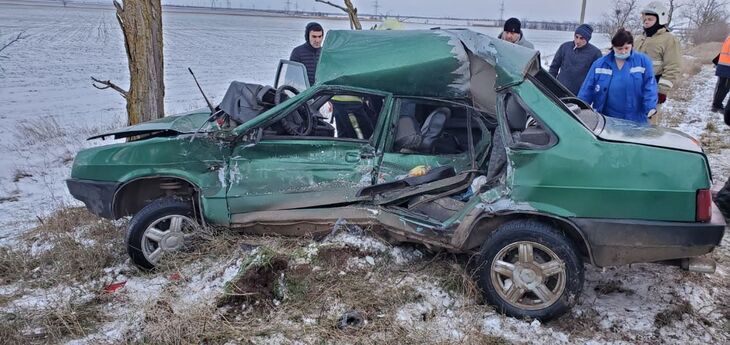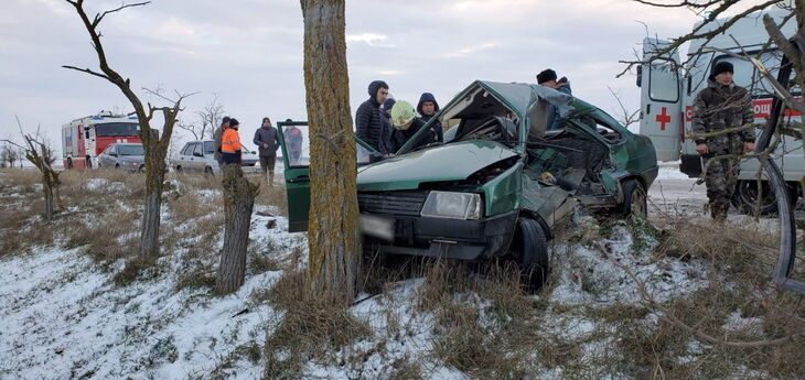 В Сакском районе из-за скользкой дороги машина влетела в дерево