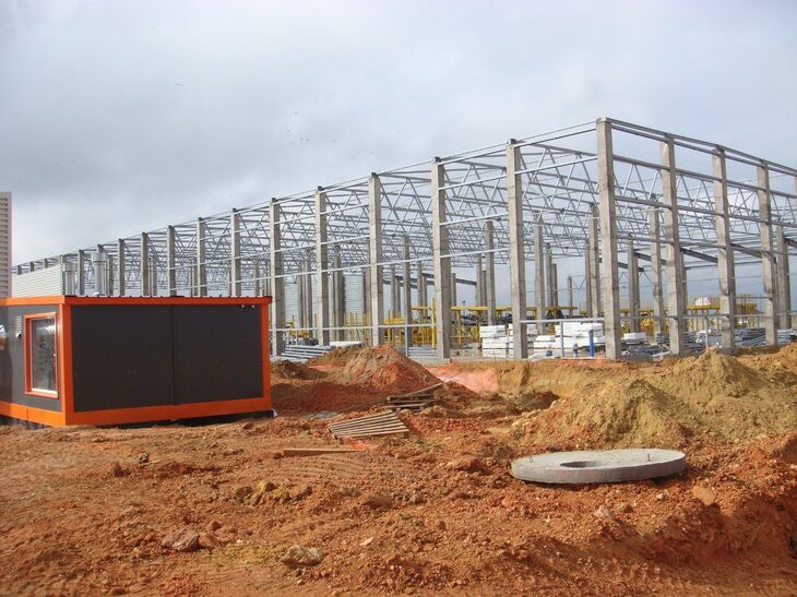 На данный момент объект готов наполовину. Сейчас строители занимаются установкой кровли и окон, а также достраивают административно-бытовой комплекс и проводят электричество.