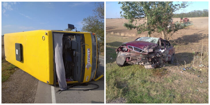 В Сакском районе столкнулись легковушка и рейсовый автобус
