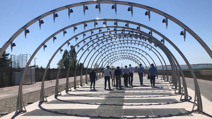 На объекте по реконструкции разделительных дамб Сакского лечебного озера министр строительства и архитектуры отметил, что работы выполняются также с опережением графика и завершены на 95%.