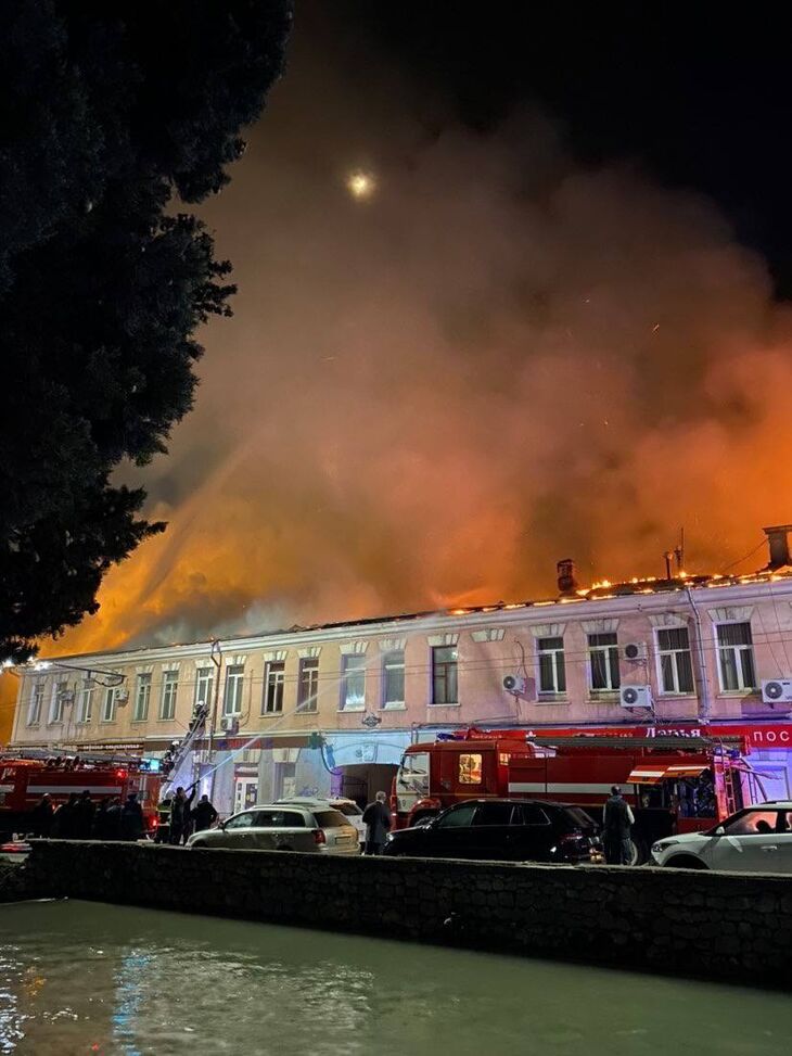 В самом центре Ялты огнеборцы уже два часа тушат пожар