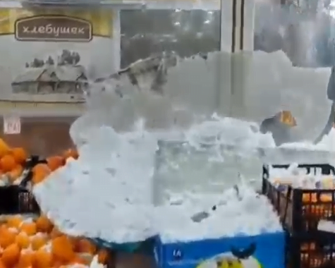 Обломки перекрытий рухнули прямо на товары. К счастью, никто не пострадал.