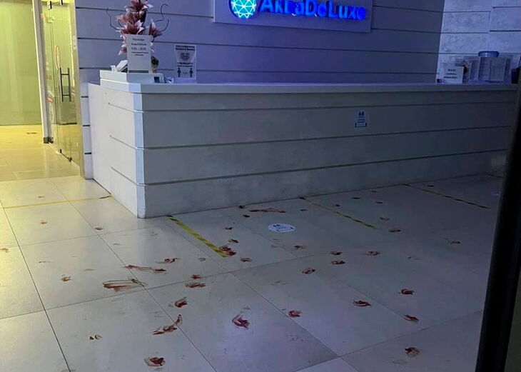 «Вызвали скорую, позвали охранников. Вскоре выбежал ее парень, весь окровавленный, избитый, голый. Двое из нападавших скрылись», — пишут очевидцы.