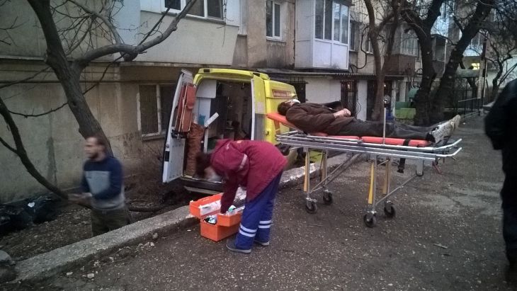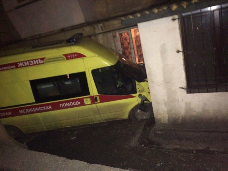 По предварительной информации, джип не пропустил автомобиль медиков, в машине находился пациент. В результате столкновения автомобиль медпомощи, перелетев через тротуар, вылетел через парапет и приземлился на уровне нулевого этажа, врезавшись в балкон дома.