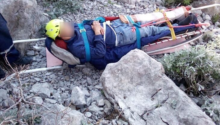 В Симеизе спасатели на носилках спустили туриста с разбитым коленом со скалы Крыло лебедя