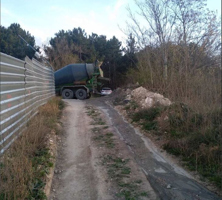 В Симферополе бетономешалки, работающие на стройке детсада, сливают в кусты остатки бетона