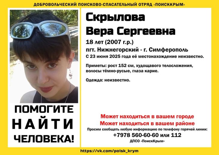 В Симферополе исчезла 18-летняя Вера Скрылова
