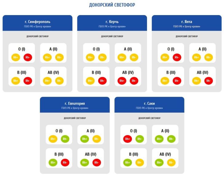 «Очень ждем доноров с группой крови и резус-фактором, которые отмечены в светофоре красным и желтым! Обязательно возьмите с собой паспорт и СНИЛС. Надеемся на вашу помощь в пополнении запасов», – рассказали корреспонденту Крымского информационного агентства в «Центре крови».