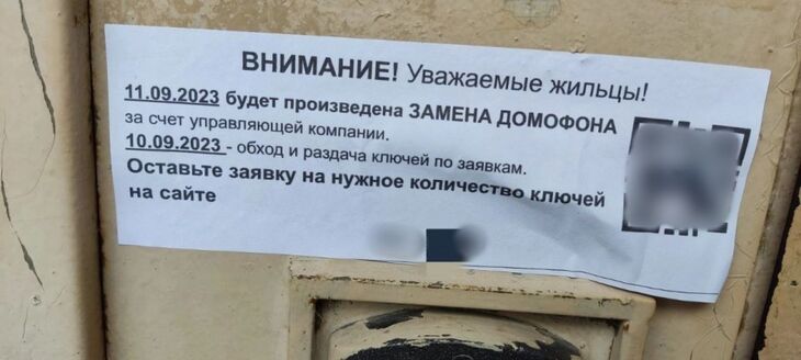 На сайте требуют указать персональные данные и необходимое количество ключей, после чего произвести оплату якобы за количество заказанных ключей. Чтобы у жильцов дома не возникло подозрений, злоумышленники указывают внизу объявления данные действующей управляющей компании, занимающейся обслуживанием домофонов, однако это не является действительностью.