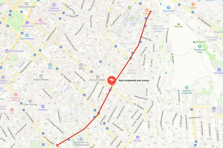 В Симферополе на 4 месяца закроют движение по улице Красноармейской