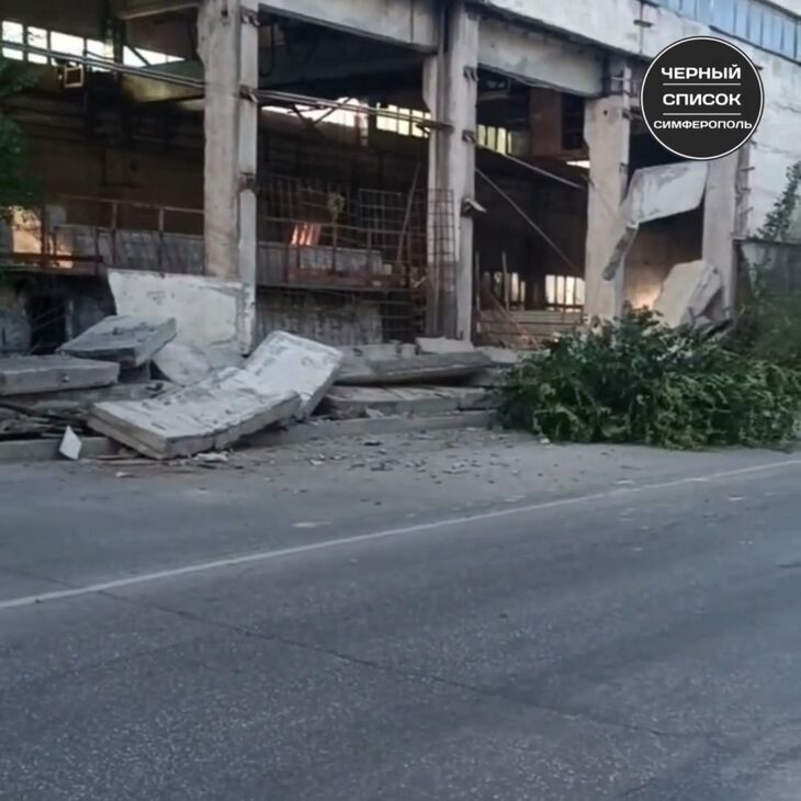 В Симферополе на улице Москалева обрушилась стена бывшего завода, частично перекрыв проезжую часть. По предварительным данным, никто не пострадал.