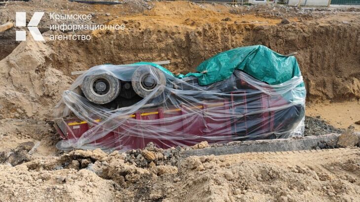 В Симферополе на улице Караимской, где проходит капитальный ремонт дороги, в траншею угодил самосвал.