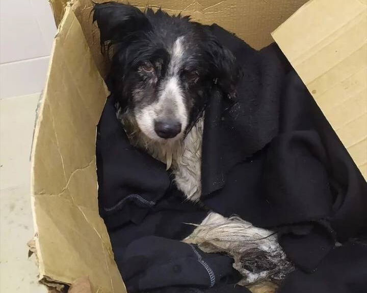 Собака пробыла в ледяной воде долгое время и после спасения даже не могла встать на лапы.