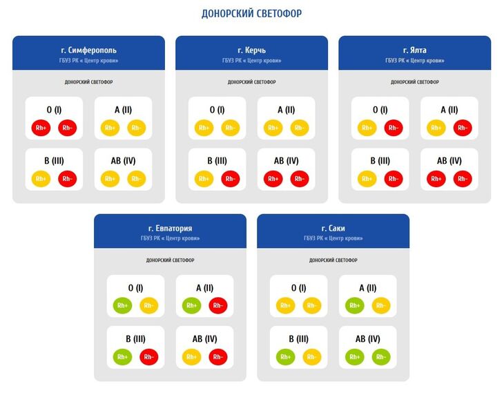 «Очень ждем доноров с группой крови и резус-фактором, которые отмечены в светофоре красным и желтым! Обязательно возьмите с собой паспорт и СНИЛС. Надеемся на вашу помощь в пополнении запасов», – рассказали корреспонденту Крымского информационного агентства в «Центре крови».