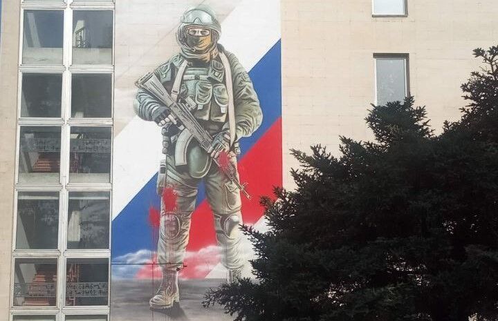 Рисунок в поддержку спецоперации, размещённый на здании ФГУП «Почта Крыма» в Симферополе, облит краской. Об этом сообщают очевидцы в социальных сетях.