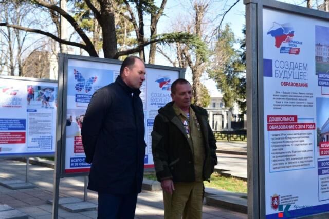 Выставка «Крымская весна. Наше будущее – в наших руках», посвященная достижениям республики за 6 лет пребывания в составе Российской Федерации, расположилась вблизи Госсовета Республики Крым. Она продлится до 31 марта 2020 года.