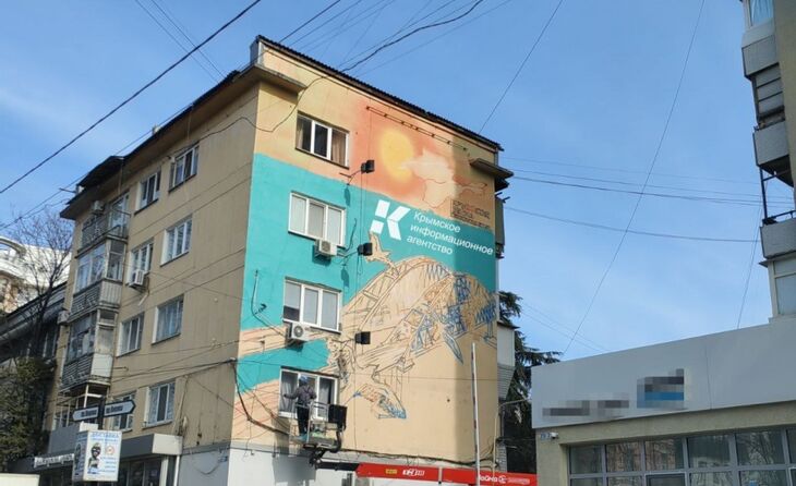 В преддверии юбилея «Крымской весны» в центре Симферополя появился новый мурал. Об этом сообщает корреспондент «Крамской газеты».